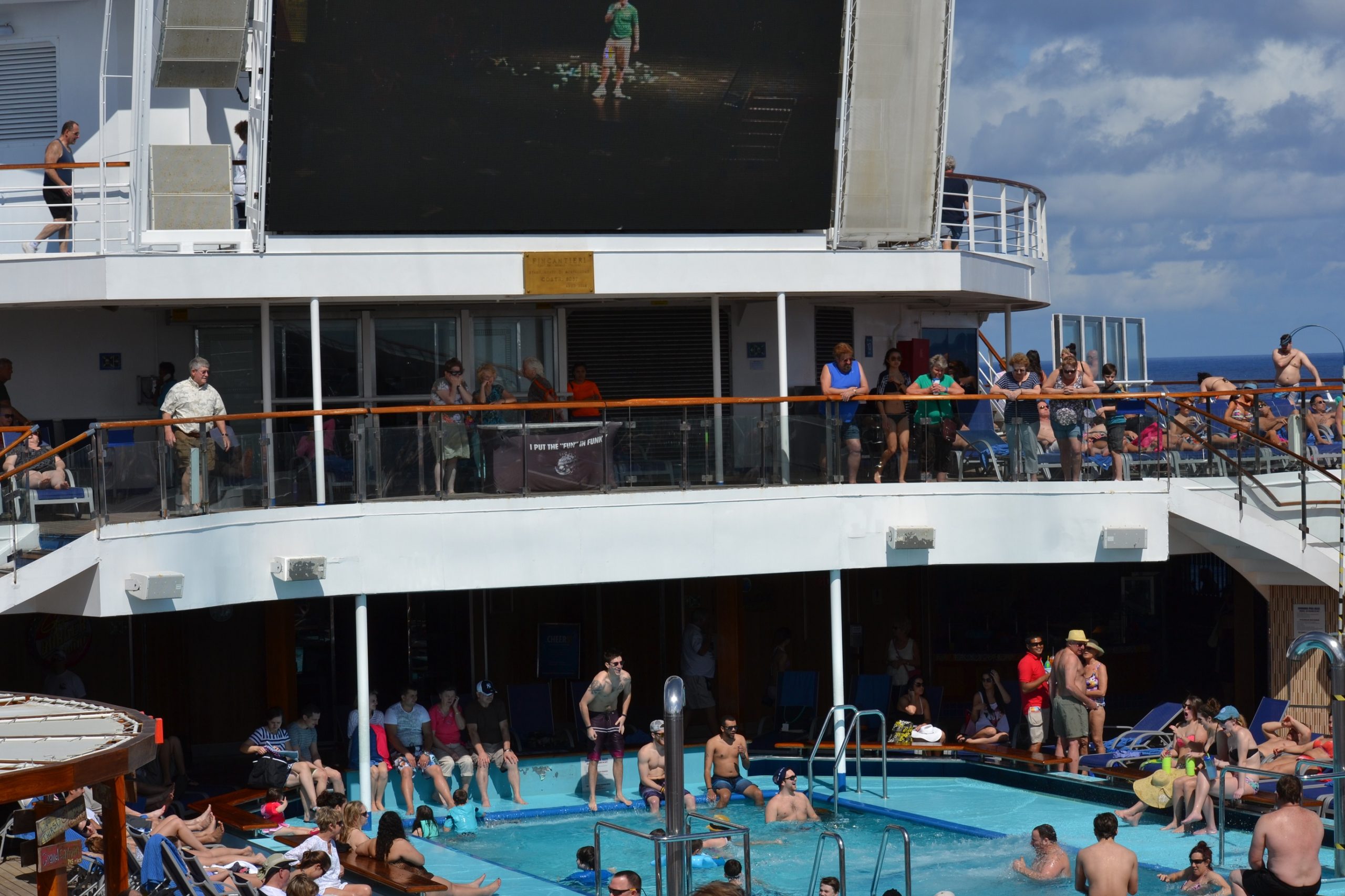 Who doesn’t like to people watch and relax? Never a dull moment here! From the BIG screen to the pool activities…something always has your attention on a cruise. Watch a movie under the stars on deck with the BIG SCREEN all the while with the ocean breeze blowing!