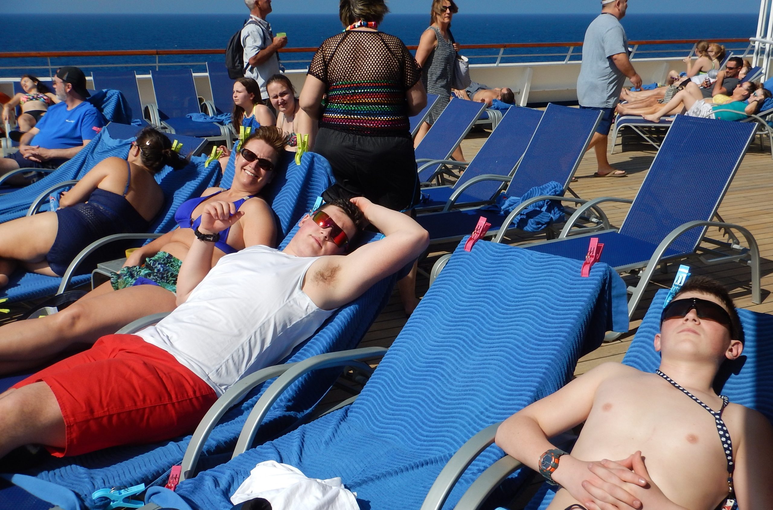 We tend to use the pools and water slides more when the boys cruise with us. However on a really hot day, it is a great way to cool down. An ice cold drink with your feet dangling in the pool are great ways to enjoy the day! A nap on a lounger in the ocean breeze or reading a book in the sunshine! Relax and take it all in! Don’t forget your CRUISE SHIP TOWEL CLIPS or your towel will blow away. Also, the towel is what holds your spot all day long!