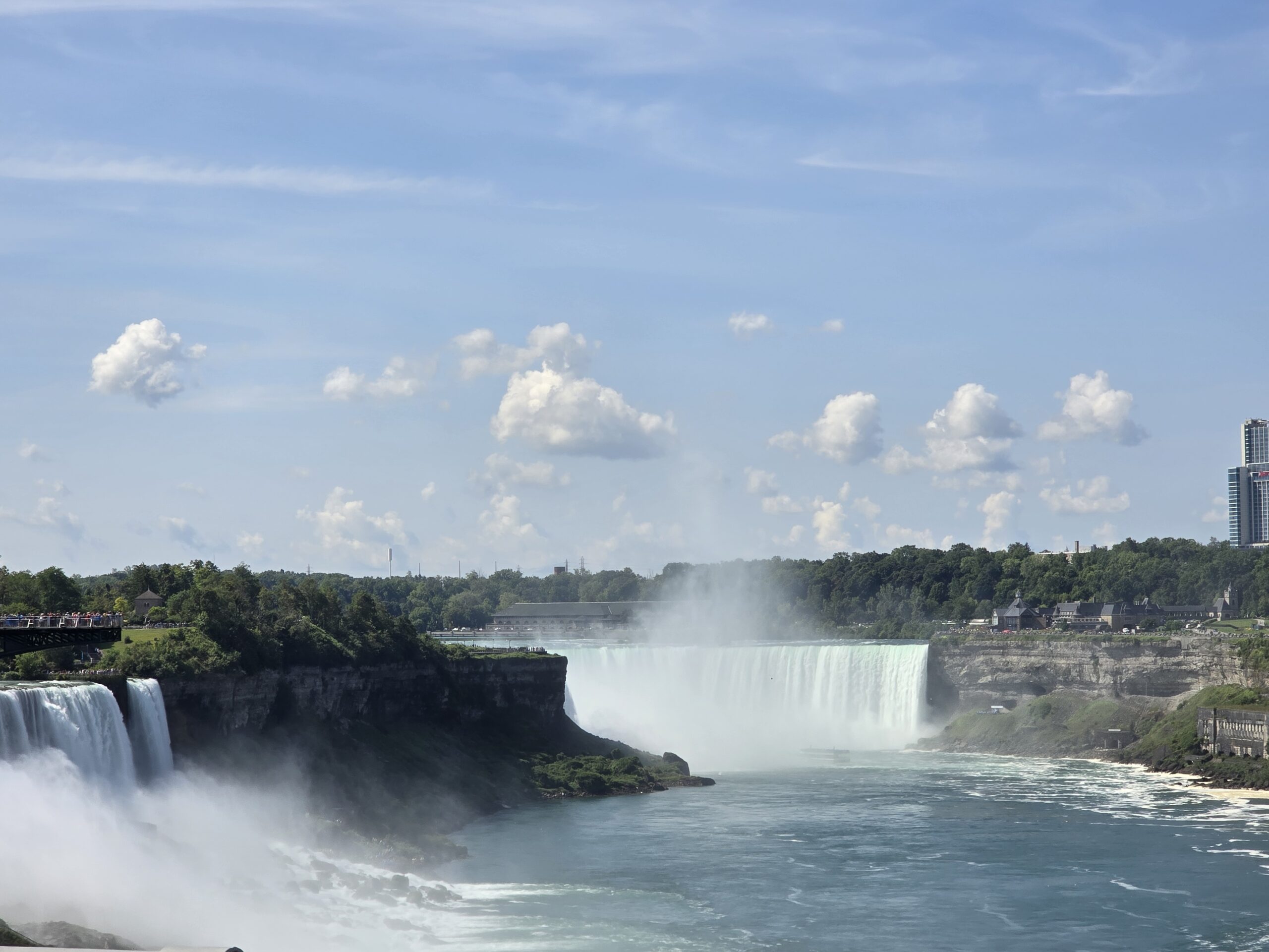 There are actually two waterfalls in Niagara, the American Falls and the Canadian Horseshoe Falls.