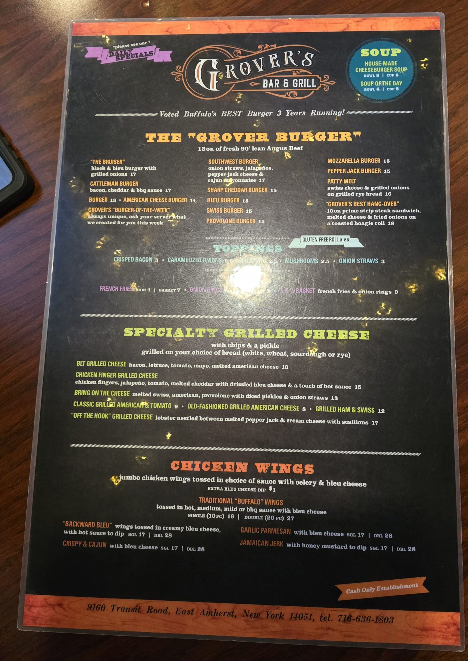 GROVER’S BAR & GRILLÂ What a treat! It was probably the best wings that I have ever consumed. I would travel all the way back there for a chance to have this meal again!